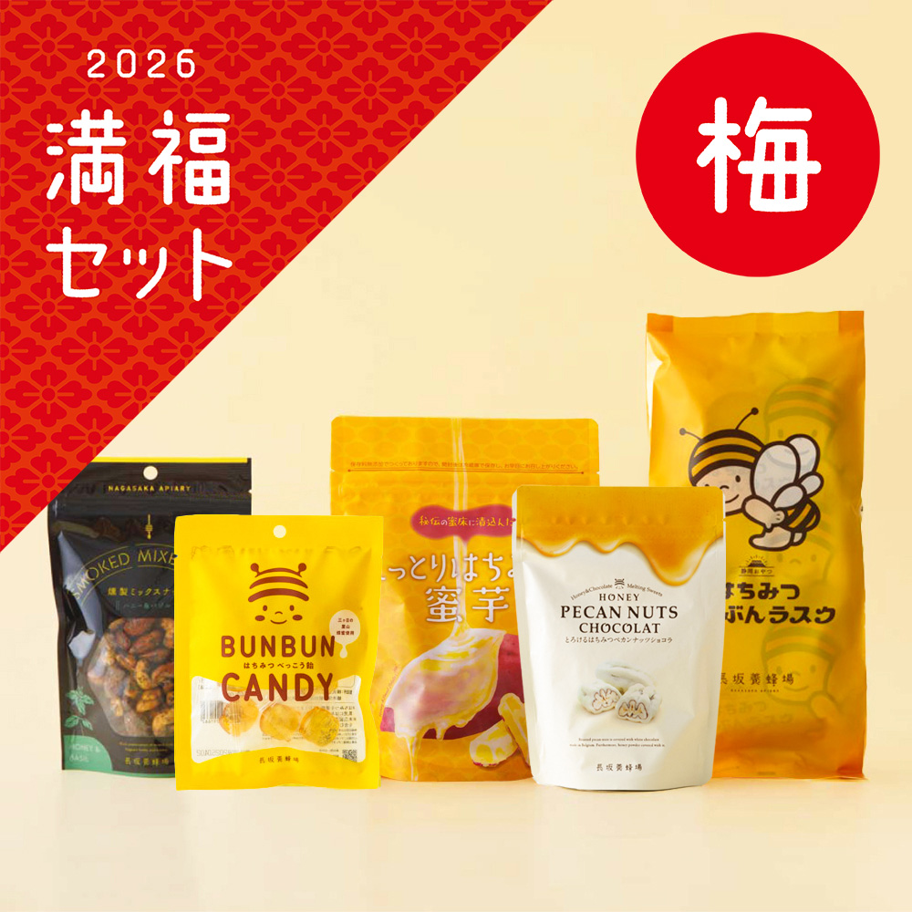 | 賞味期限 | ・はちみつべっこう飴:製造日より6ヶ月 ・【静岡おやつ】はちみつぶんぶんラスク:製造日より30日 ・とろける はちみつペカンナッツショコラ:製造日より120日 ・燻製ミックスナッツ(ハニー&バジル):製造日より3ヶ月 ・しっとりはちみつ蜜芋:製造日より30日 |